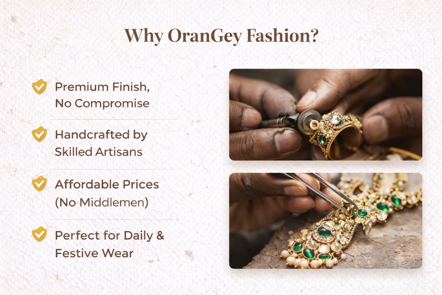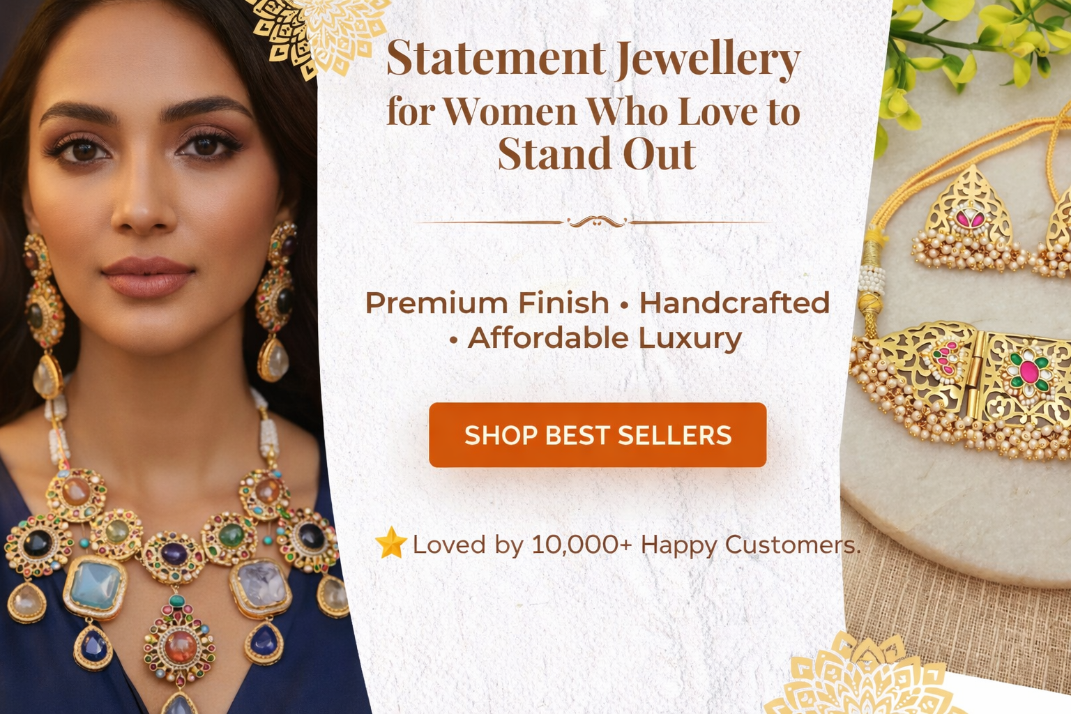 Handcrafted jewellery designed to make you stand out. Premium finish, limited stock pieces, fast PAN India delivery & easy returns — shop with complete confidence.